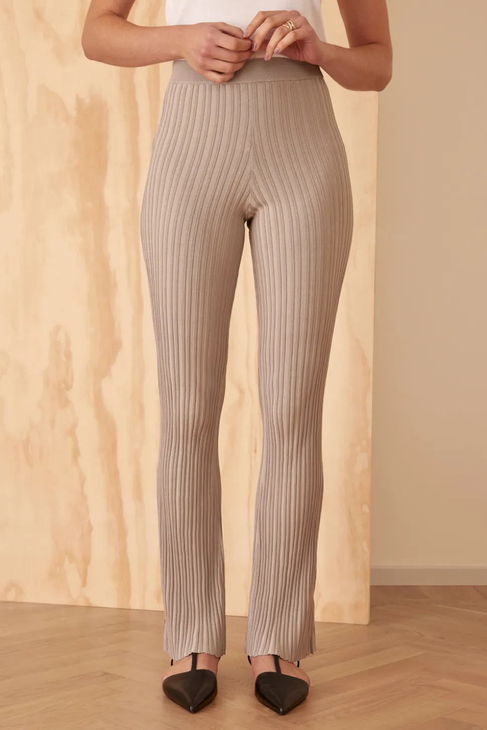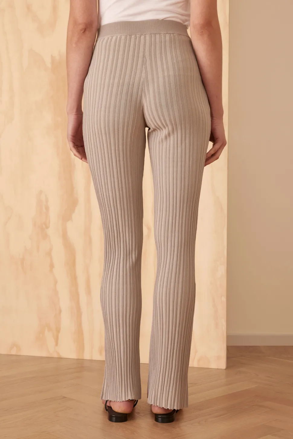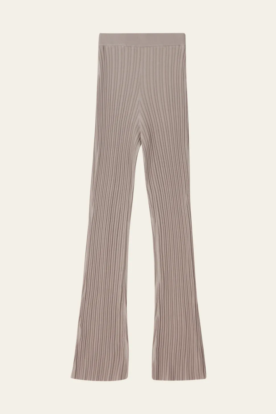 Ribbstickade utsvängda byxor i stretchigt tyg. Matcha den med den ribbade stickade koftan för en komplett look.