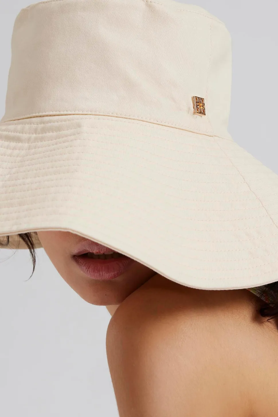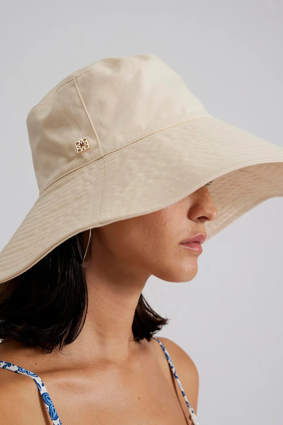 Fiskehatt med vid passform och en liten Malina logga i guld.
