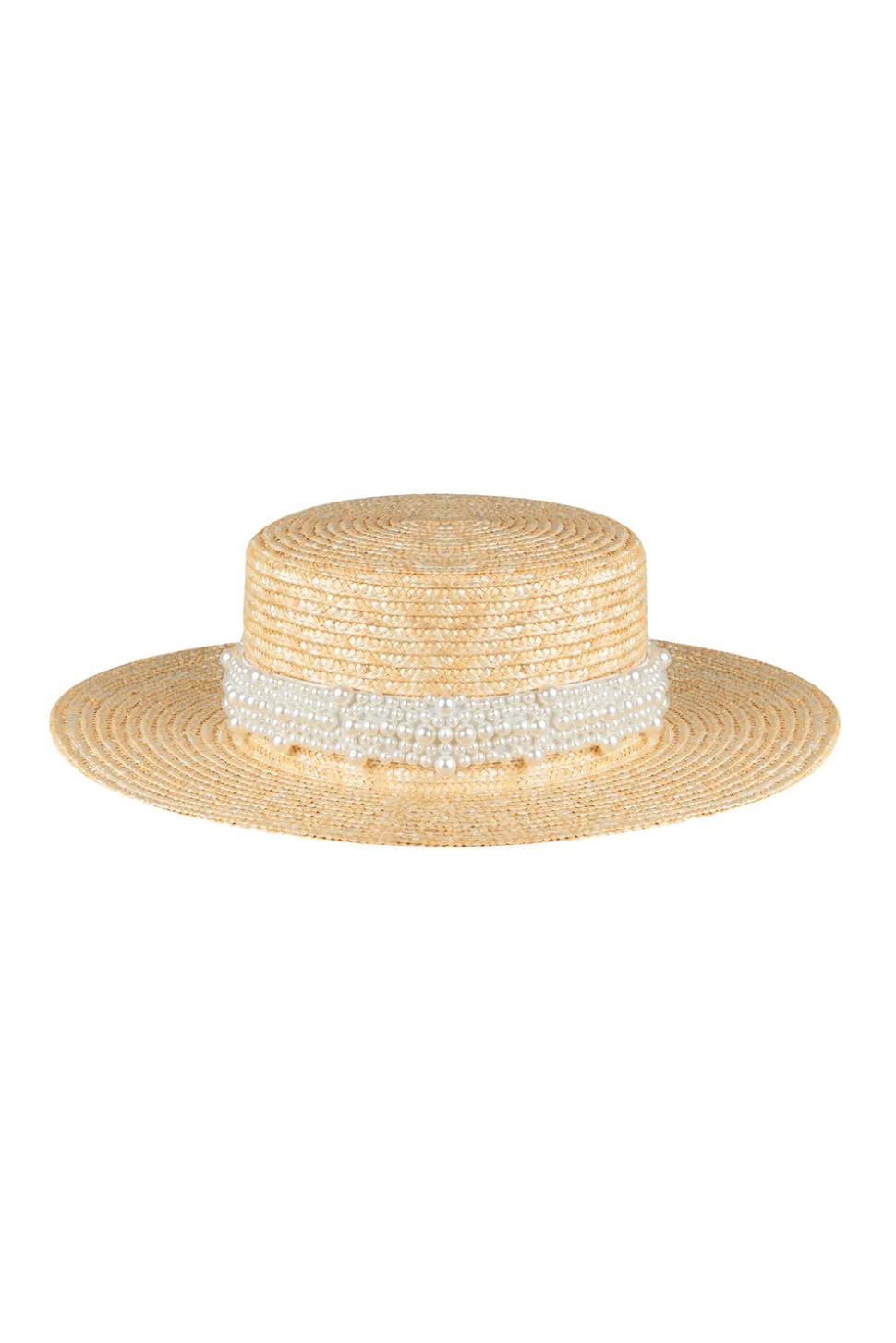Stråhatt dekorerad med pärlor. Matcha den med vår Bridal raffia-väska eller Nikki-strå väska.