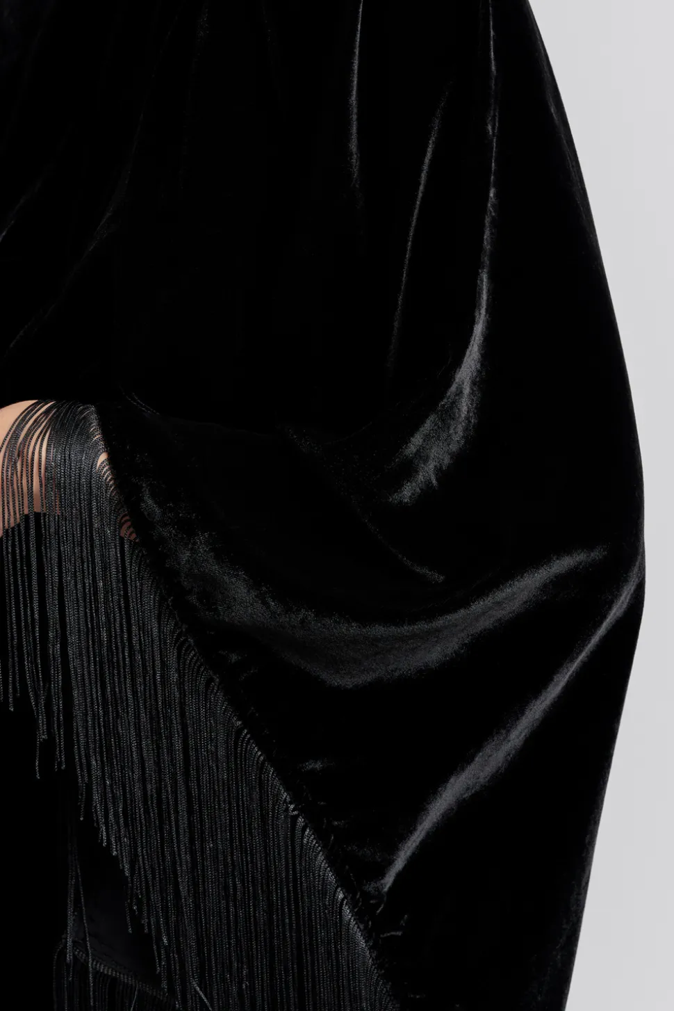 Midiklänning i sammet med fransdetaljer