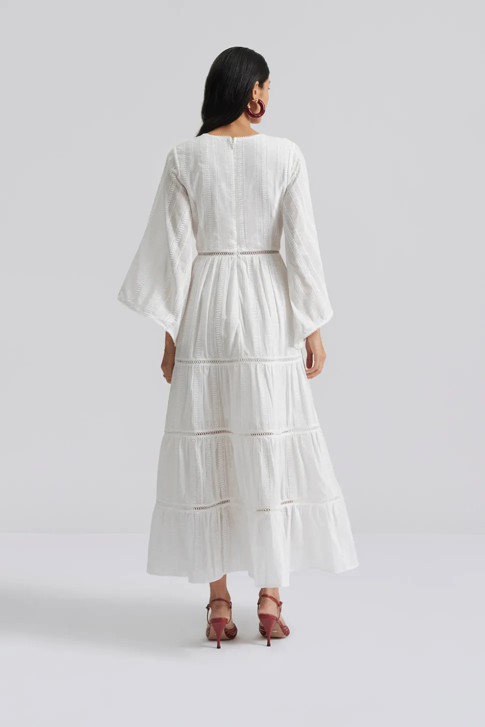Maxiklänning med lång ärm och broderidetaljer.