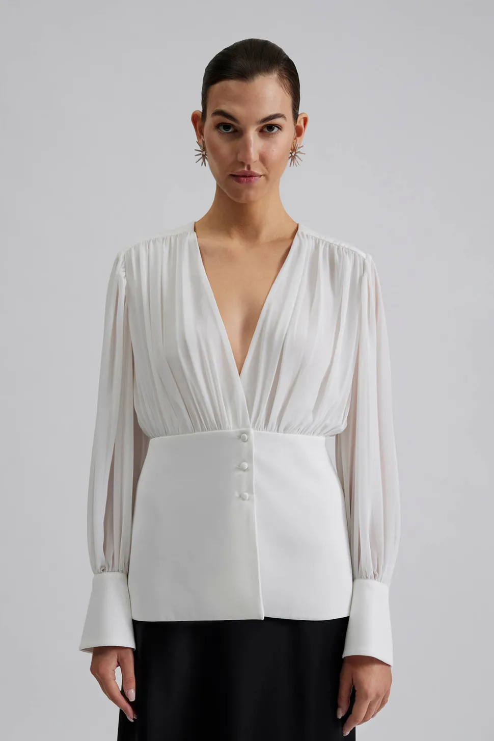 Blus i chiffong med omlottdetalj