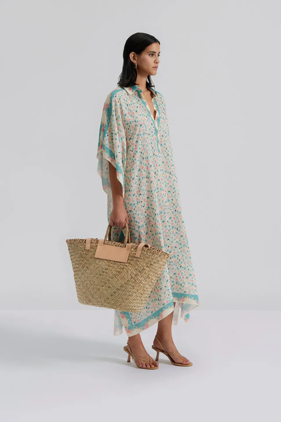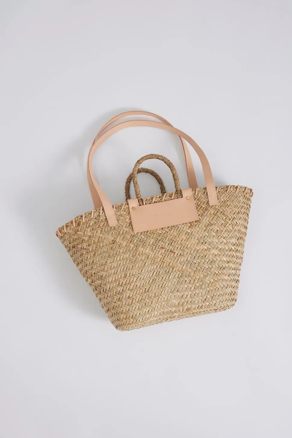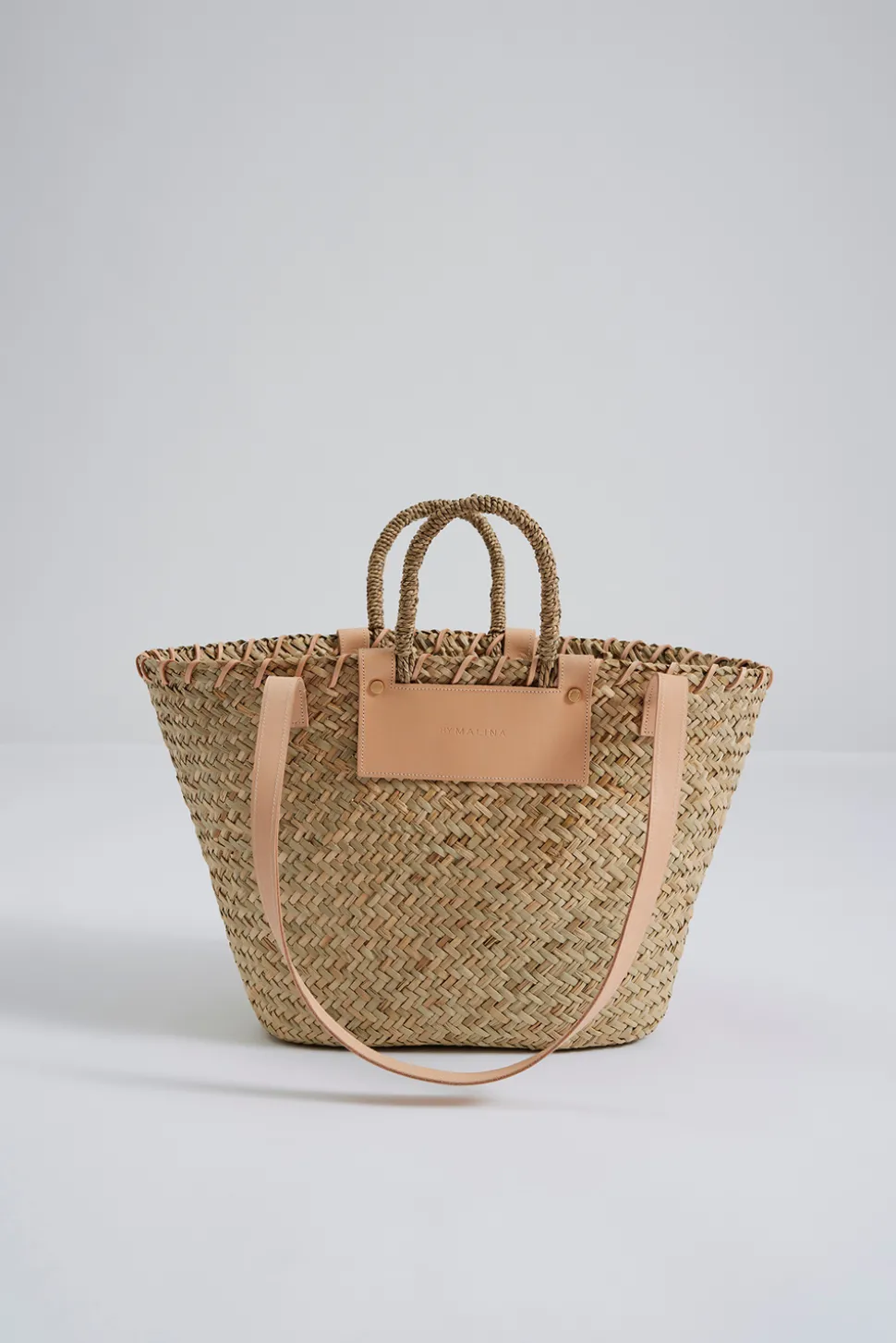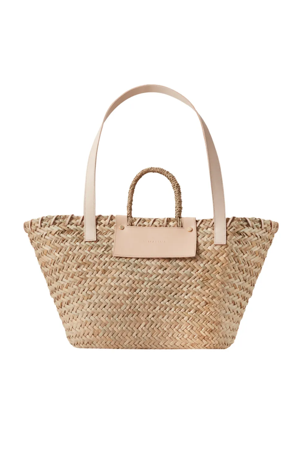 Stråväska med skinndetaljer och justerbara band som är avtagbara.