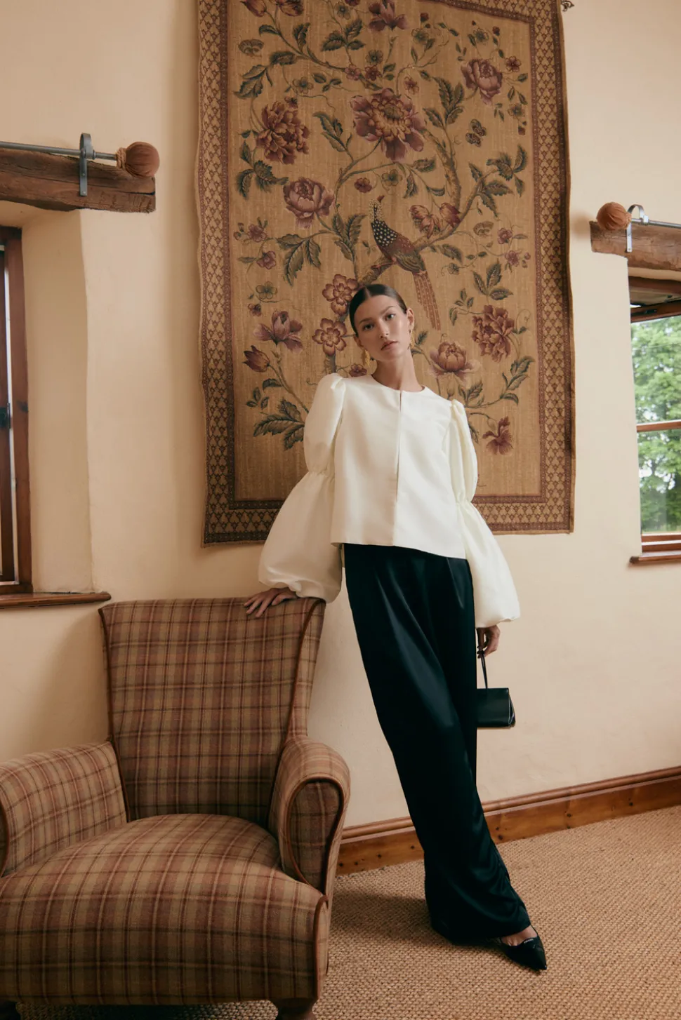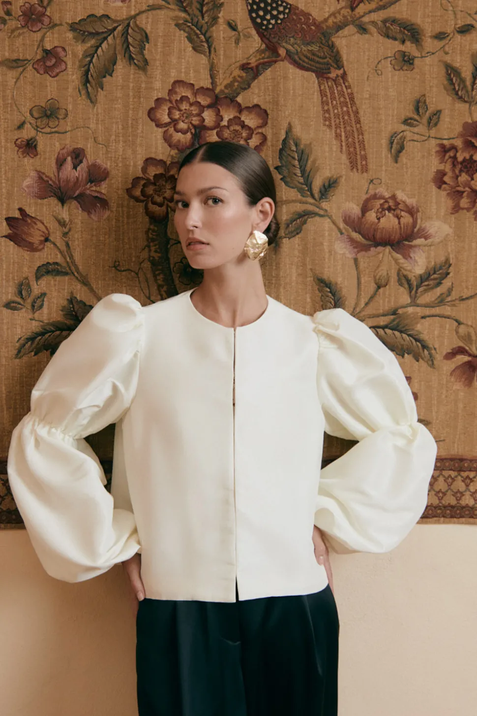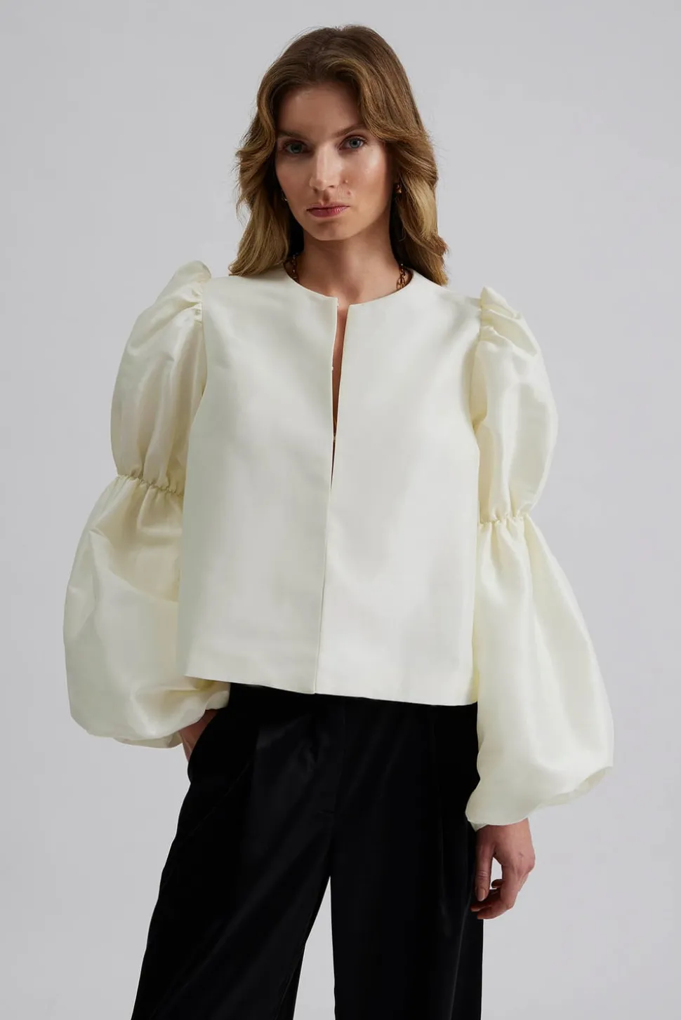 Långärmad blus med dubbelpuffärm med resår i ärmarna.