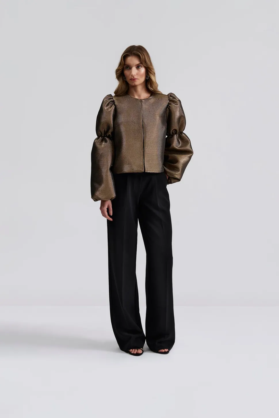 Långärmad blus med dubbelpuffärm med resår i ärmarna.
