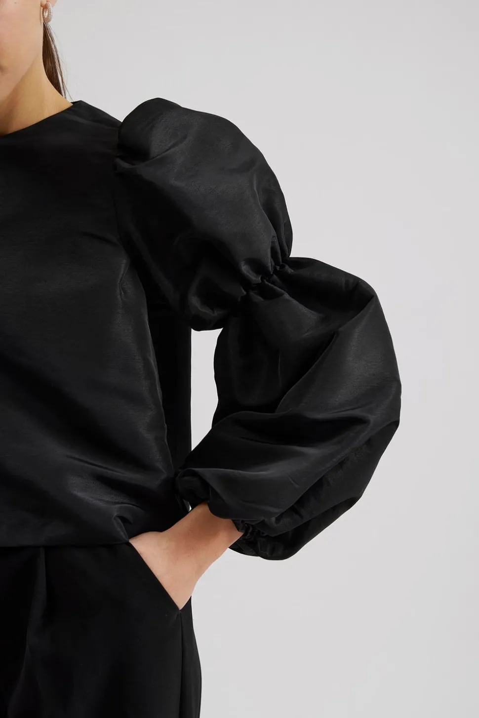 Långärmad blus med dubbelpuffärm med resår i ärmarna.